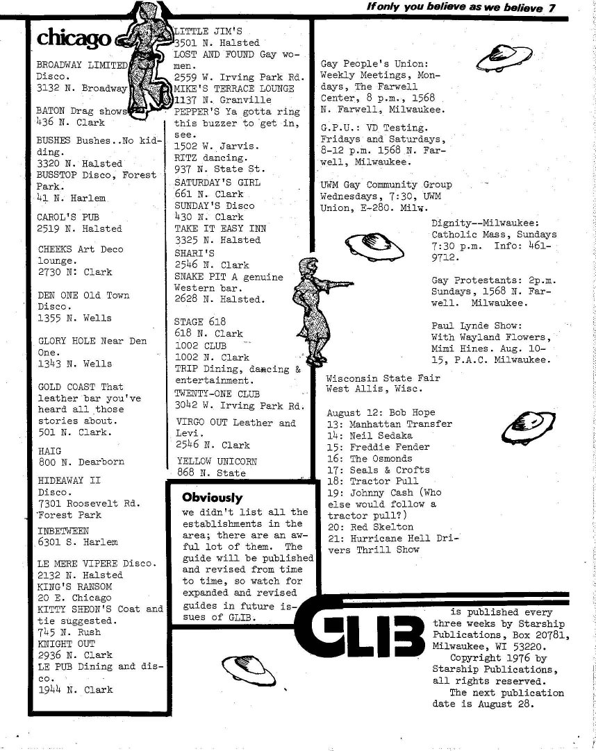 GLIB Guide continued, incl. Chicago bars, + Wisconsin organizations (page 7)