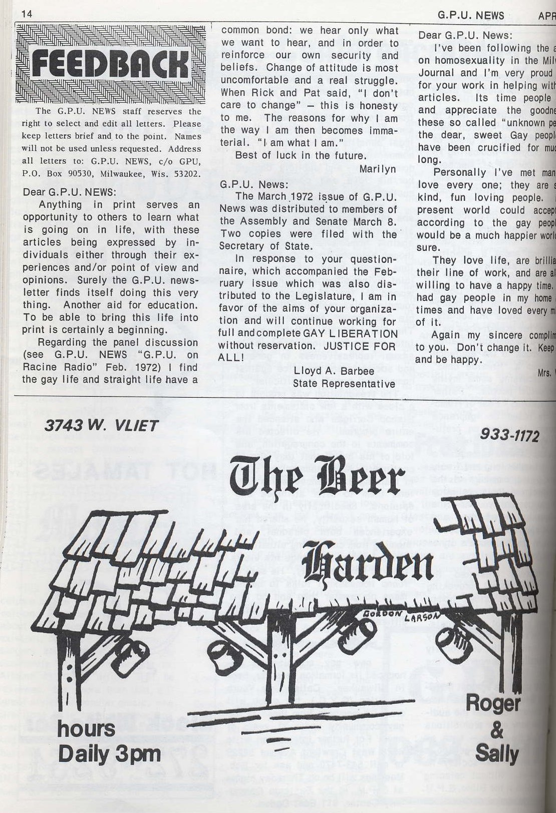 Feedback, & Advertisement for the Beer Garden