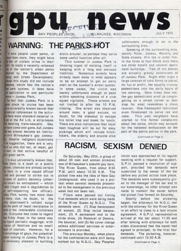 Special thanks to UWM Special Collections Department for assistance in compiling the GPU News cover gallery and extracts of contents.