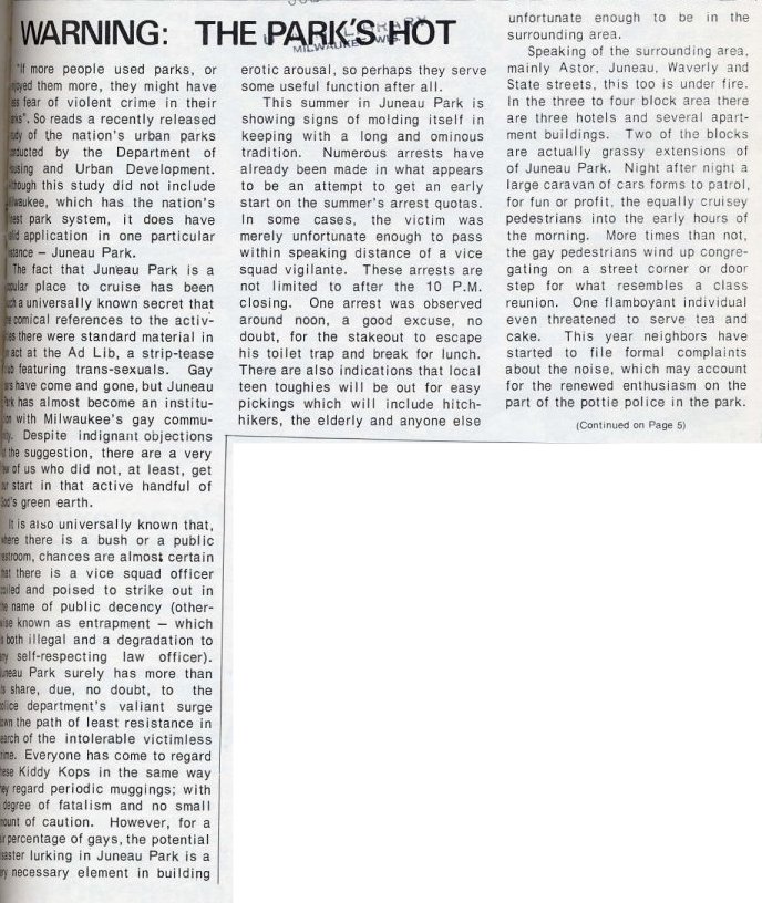 Juneau Park "Tearooms" are dangerous places for sex (page 1)