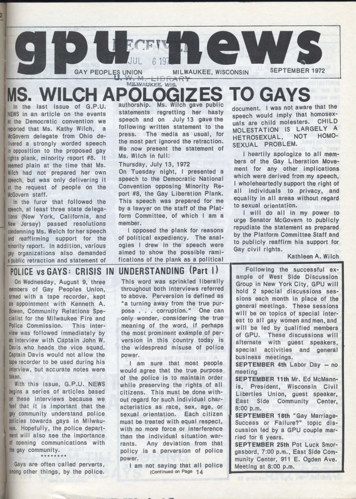 Special thanks to UWM Special Collections Department for assistance in compiling the GPU News cover gallery and extracts of contents.
