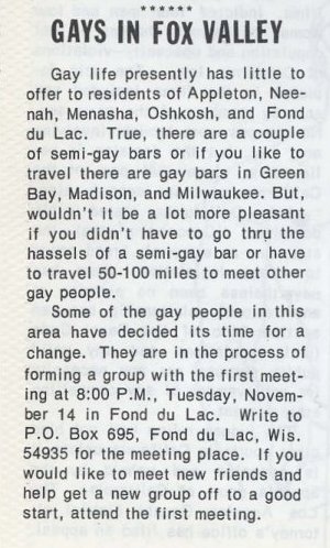 Gays in Fox Valley organizing
