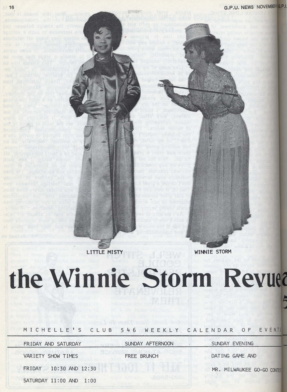 Advertisement for Winnie Storm Revue at Michelles's Club 546