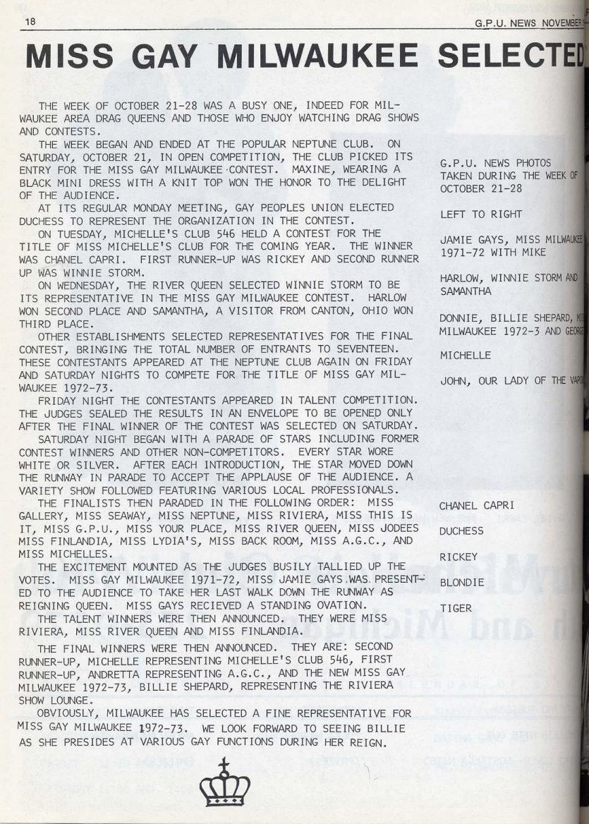 new Miss Gay Milw. 72-73, Billie Shepard