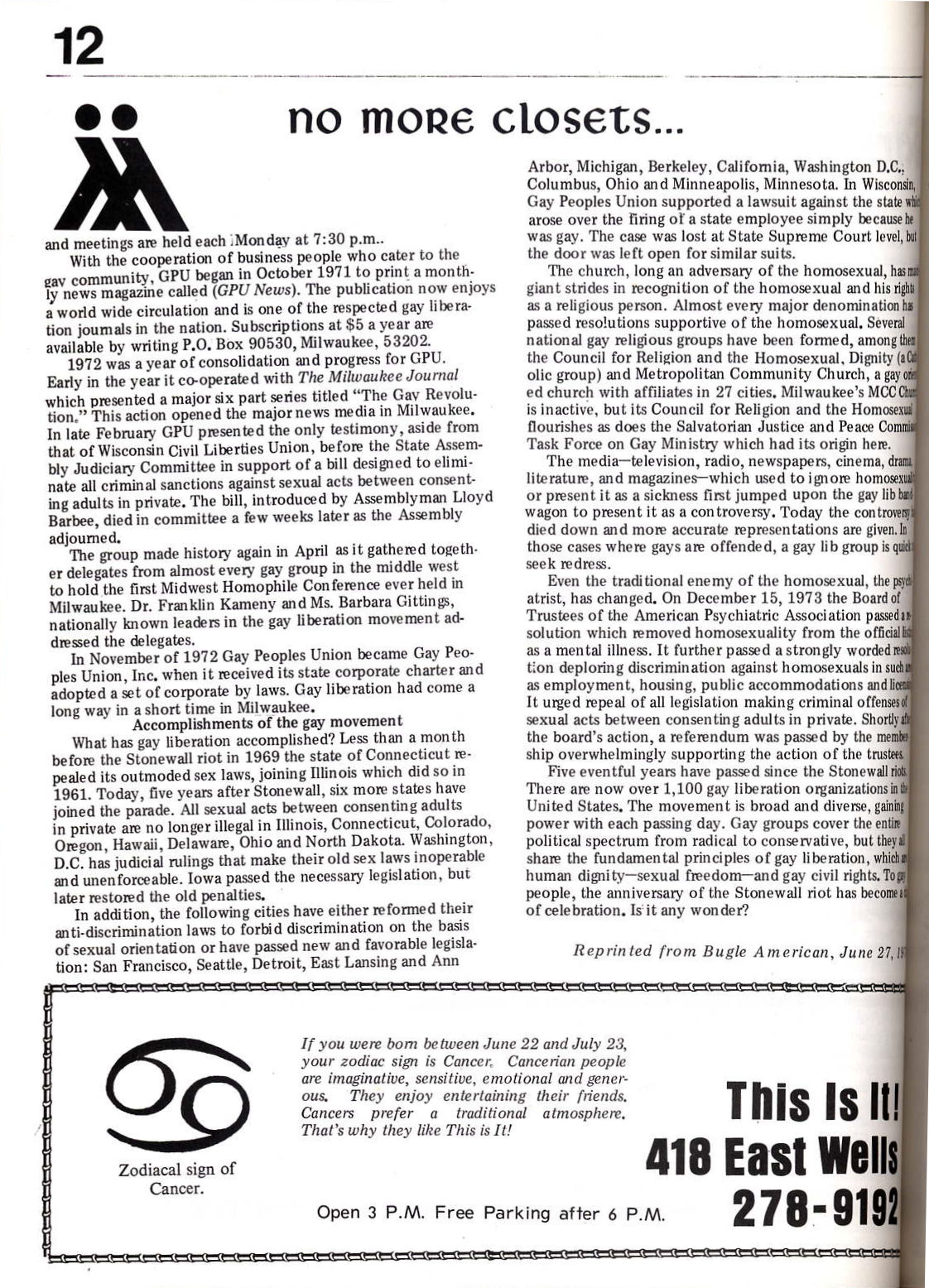Special thanks to UWM Special Collections Department for assistance in compiling the GPU News cover gallery and extracts of contents.