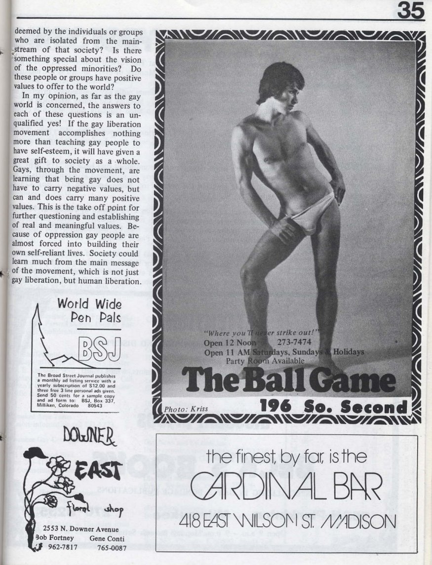 Advertisements: Ball Game, and Cardinal Bar (Madison)