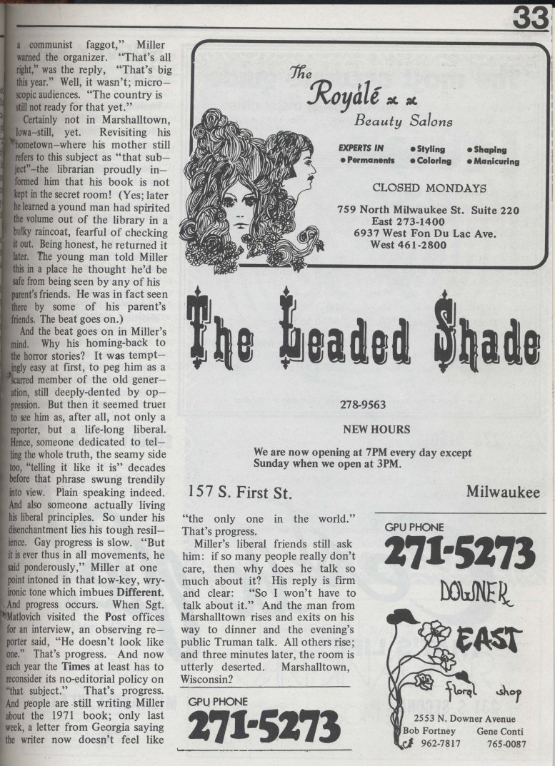 Special thanks to UWM Special Collections Department for assistance in compiling the GPU News cover gallery and extracts of contents.