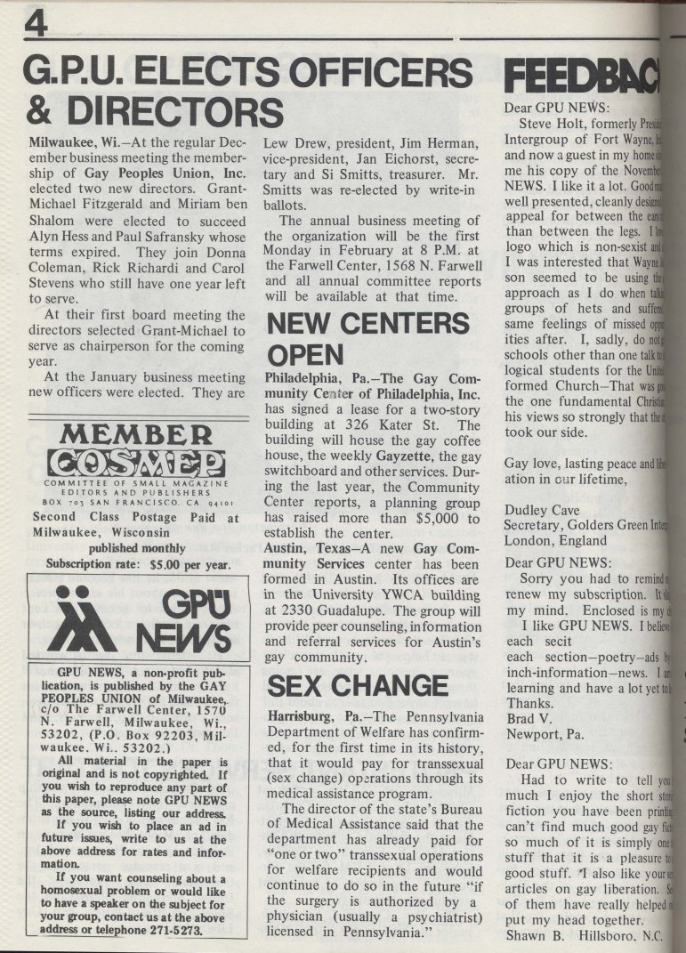 Special thanks to UWM Special Collections Department for assistance in compiling the GPU News cover gallery and extracts of contents.