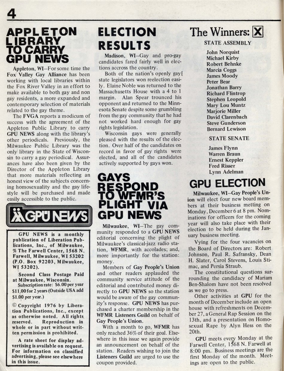 Special thanks to UWM Special Collections Department for assistance in compiling the GPU News cover gallery and extracts of contents.