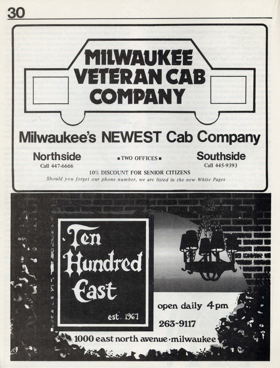 Advertisements: Veteran Cab company & Ten Hundred East bar