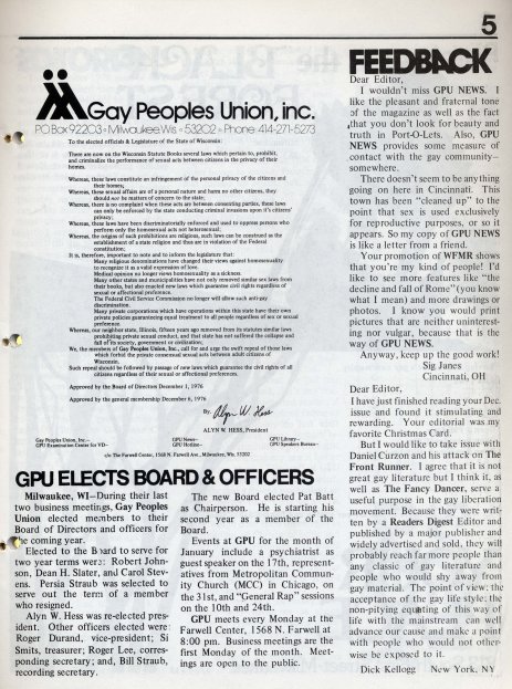 Special thanks to UWM Special Collections Department for assistance in compiling the GPU News cover gallery and extracts of contents.