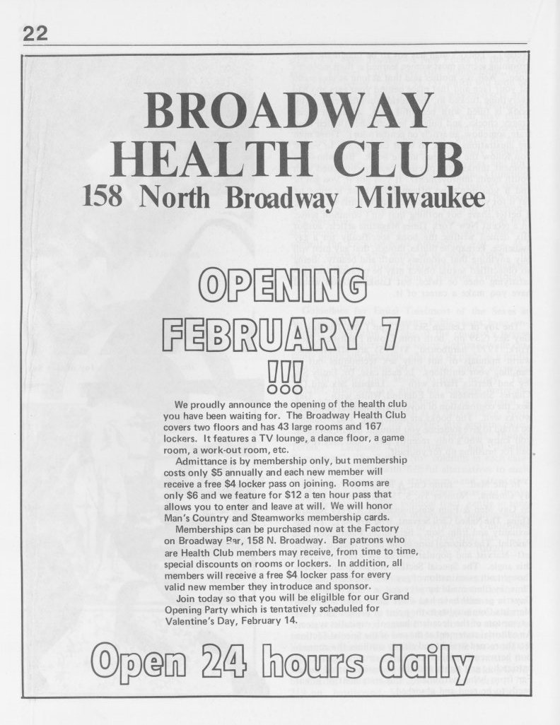 Advertisement for Club Baths Milwaukee advertising 20 new rooms