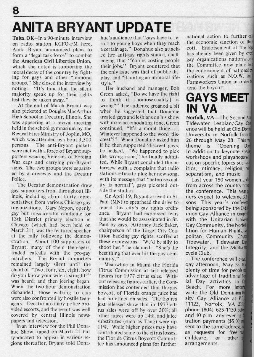News: Anita Bryant update