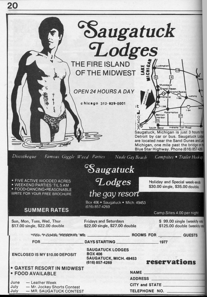 Advertisement: Saugatuck Lodges, Michigan