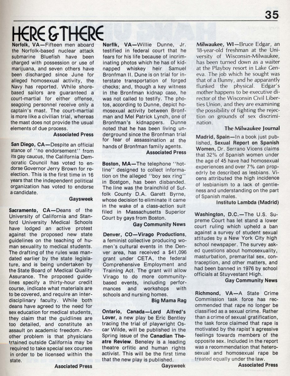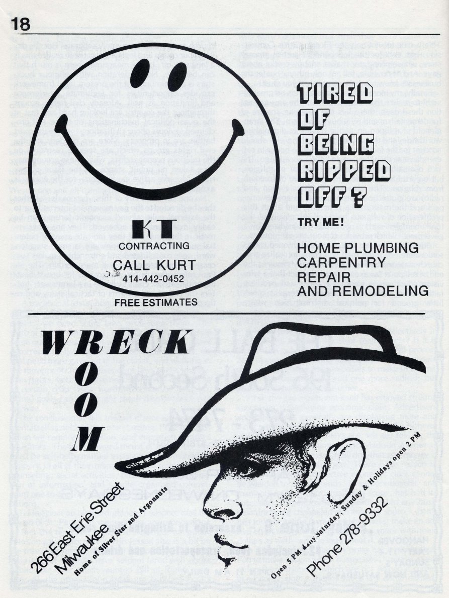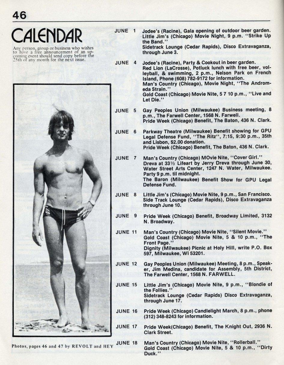 Note: The GPU News was nationally distributed, and included a high percentage of general content: gay and lesbian news from other cities and states, original fiction, stories, and poetry, etc. The excerpts presented here are concentrated on local interest (Milwaukee and Wisconsin). Those so inclined are encouraged to visit the UWM Libraries- Special Collections Department in Milwaukee to view the complete issues, which include all of the general interest materials not included here.