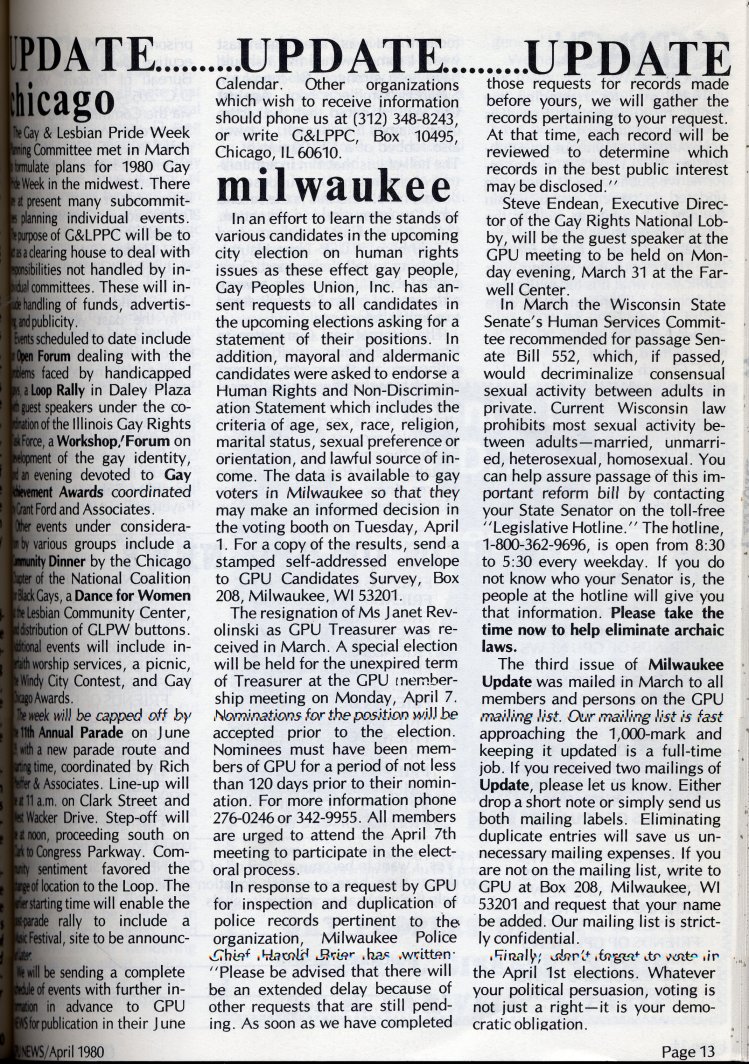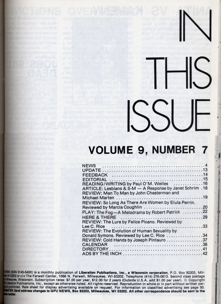 Special thanks to UWM Special Collections Department for assistance in compiling the GPU News cover gallery and extracts of contents.