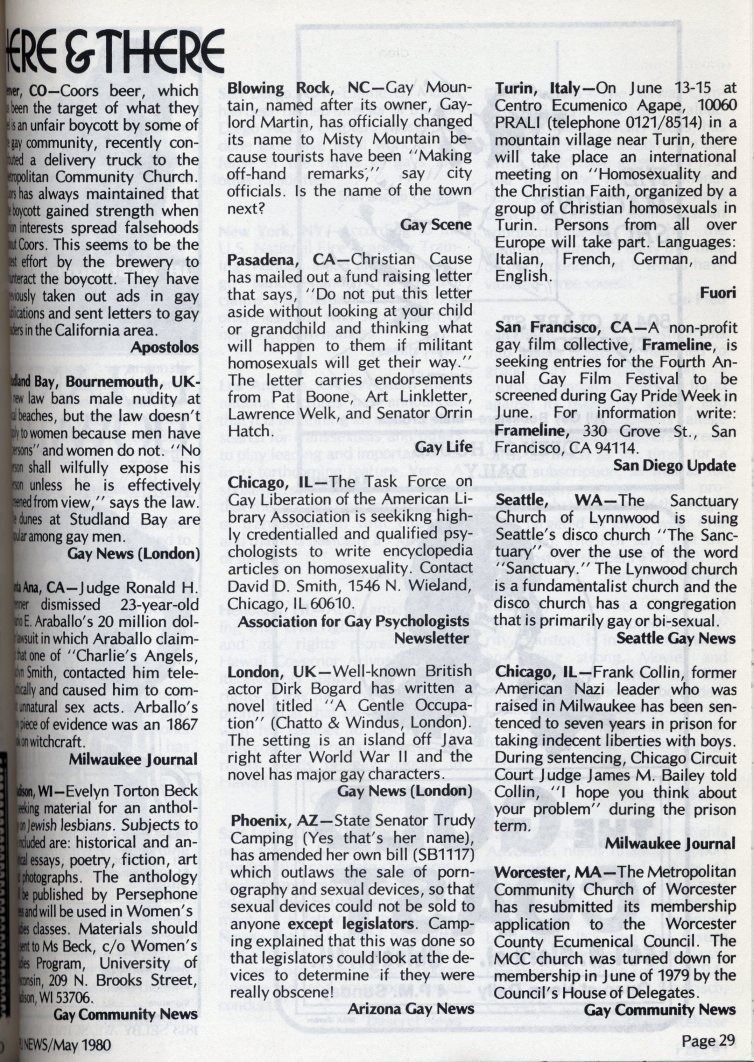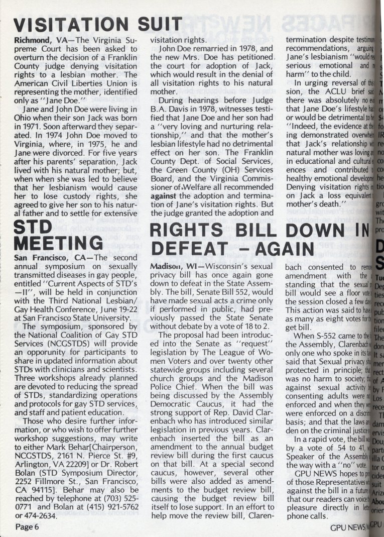 GRNL + 1980 Pride Celebration planning + Circulation information about the GPU Update newsletter (page 10)