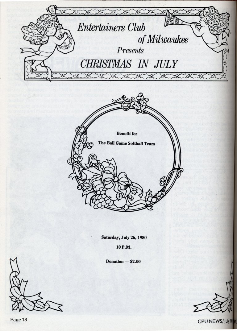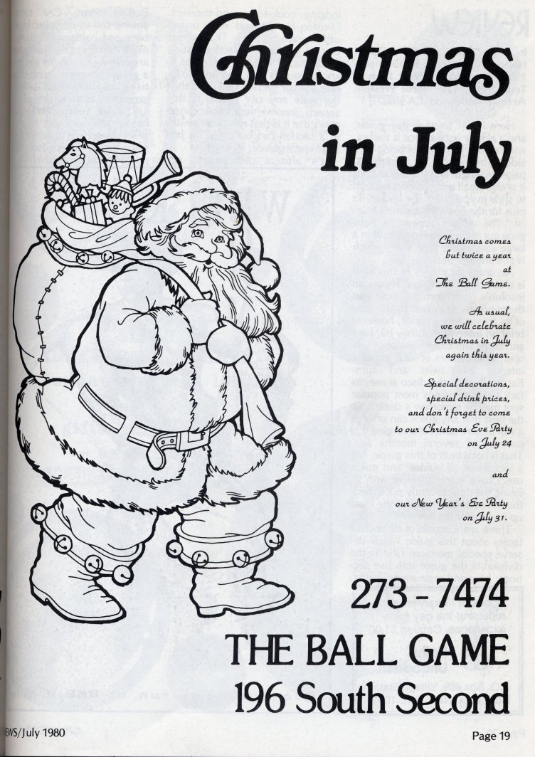 Ad for Ballgame's Christmas in July party (page 19)