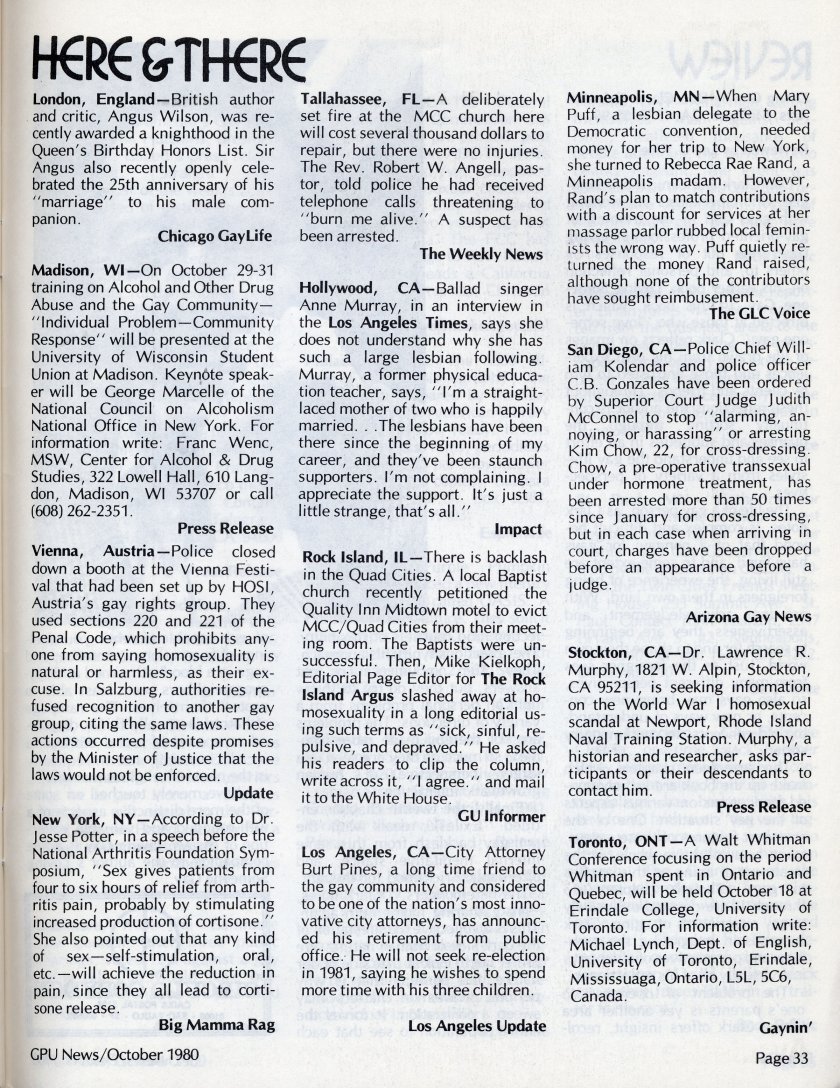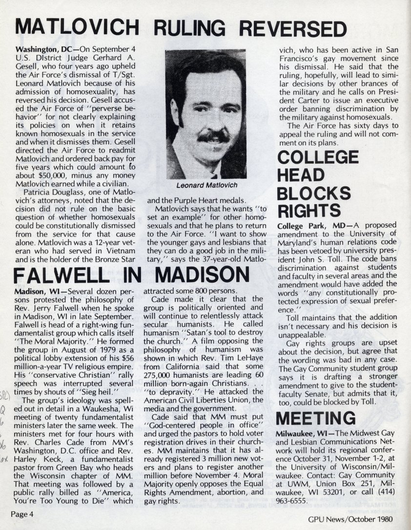 Rev. Jerry Falwell rally in Madison protested; Midwest Gay & Lesbian Communications Network holds regional conference at UWM