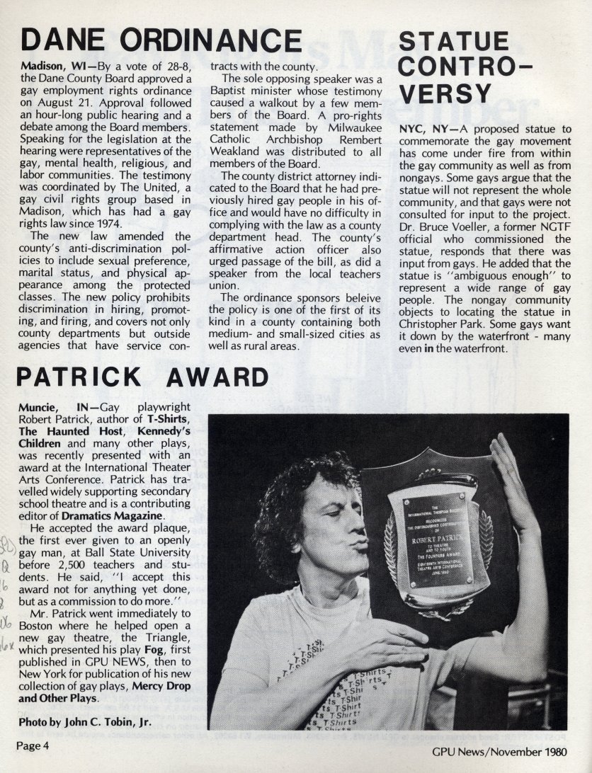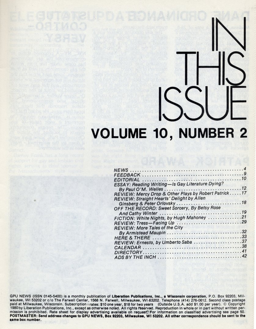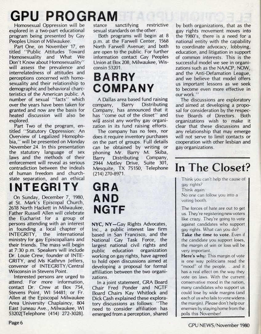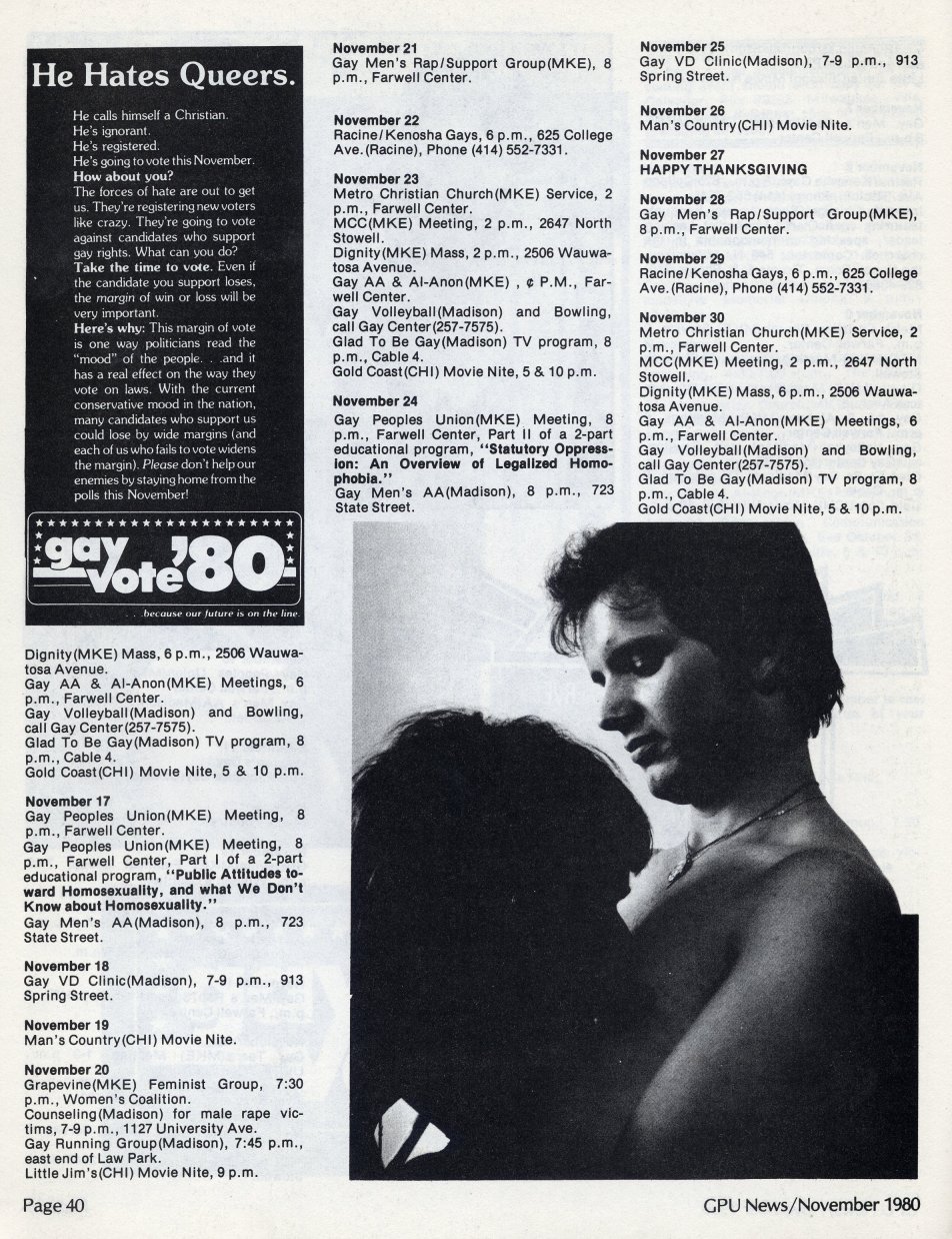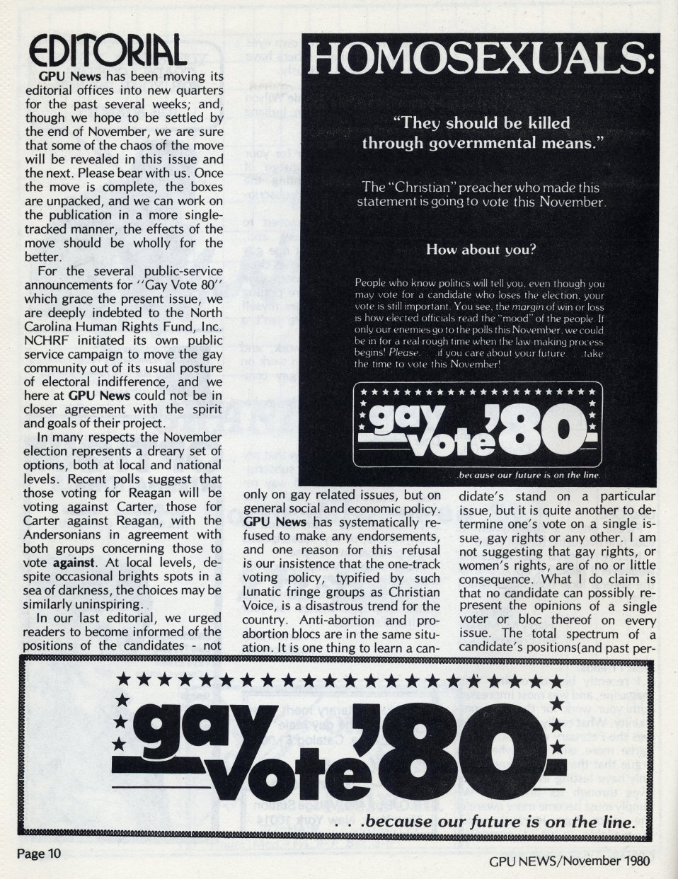 GPU News editorial offices moving; Gay Vote 80 public service announcements