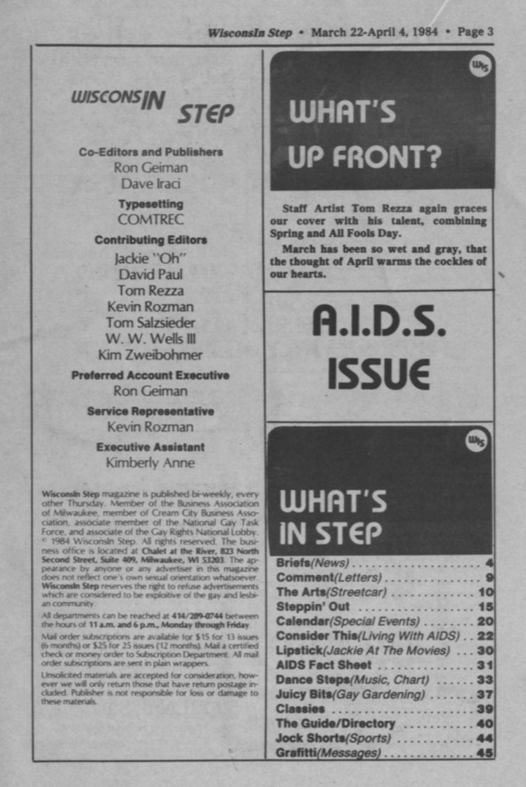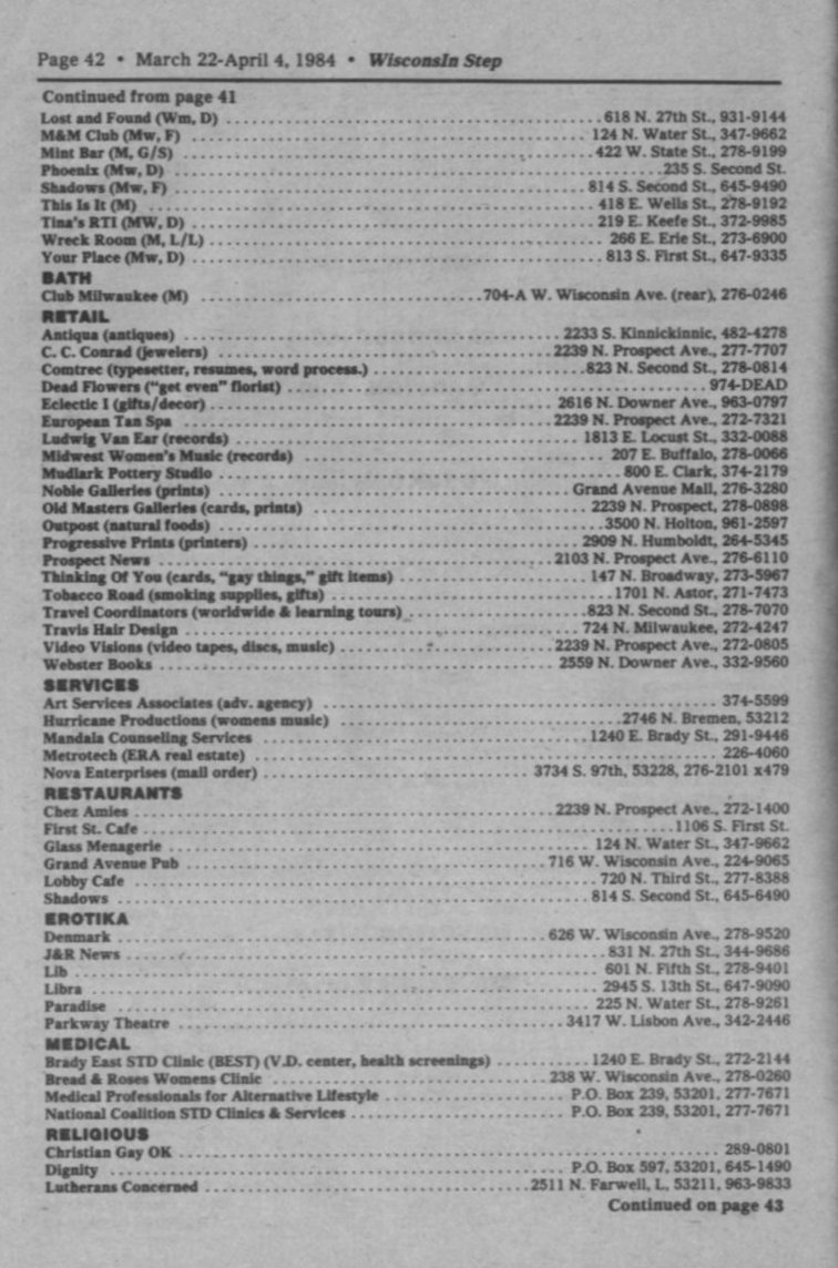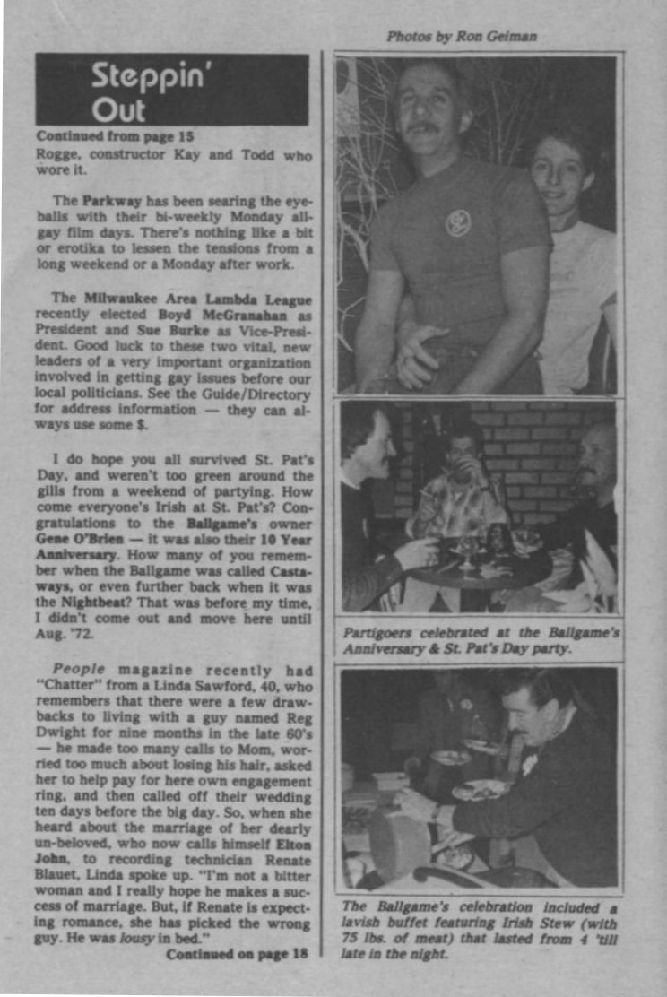 Steppin' Out, cont.: Parkway theatre showing gay films; Milw Area Lambda League; Ballgame anniversary (previously Castaways and Nightbeat)