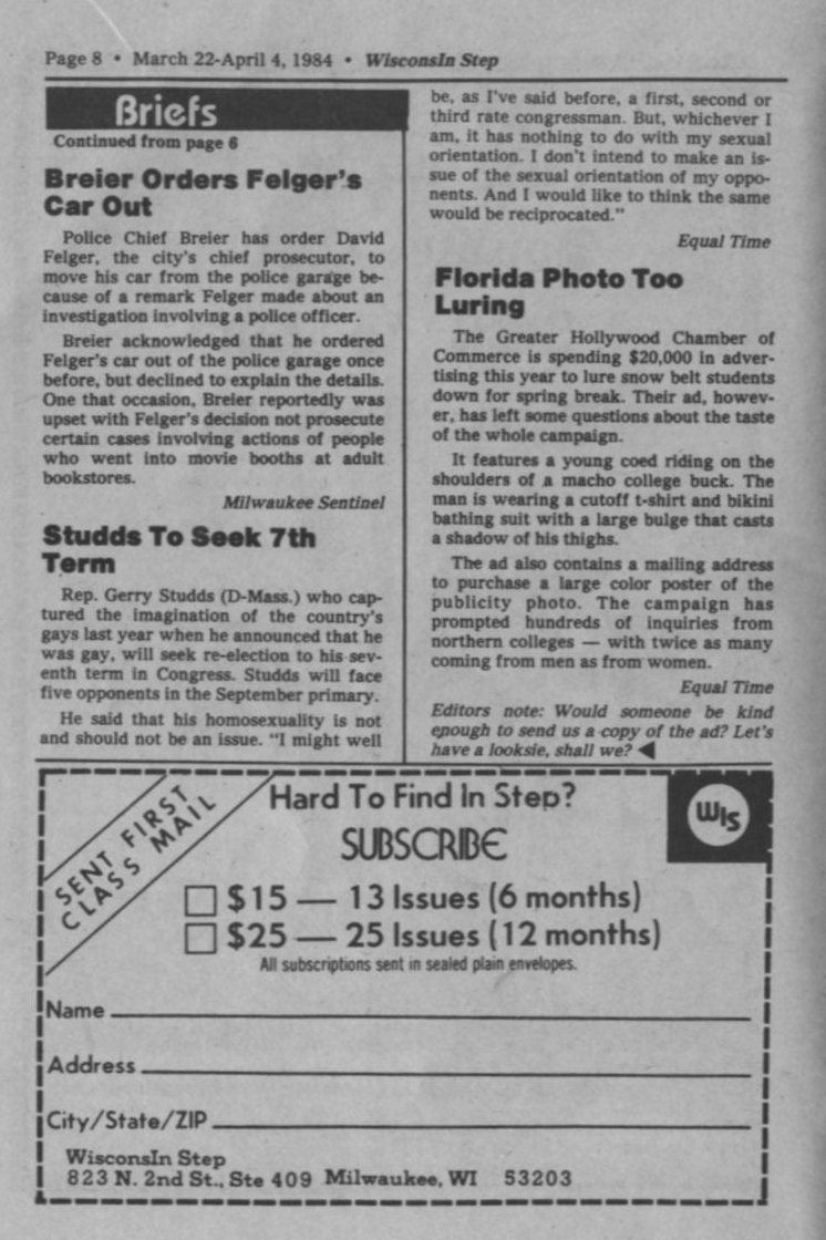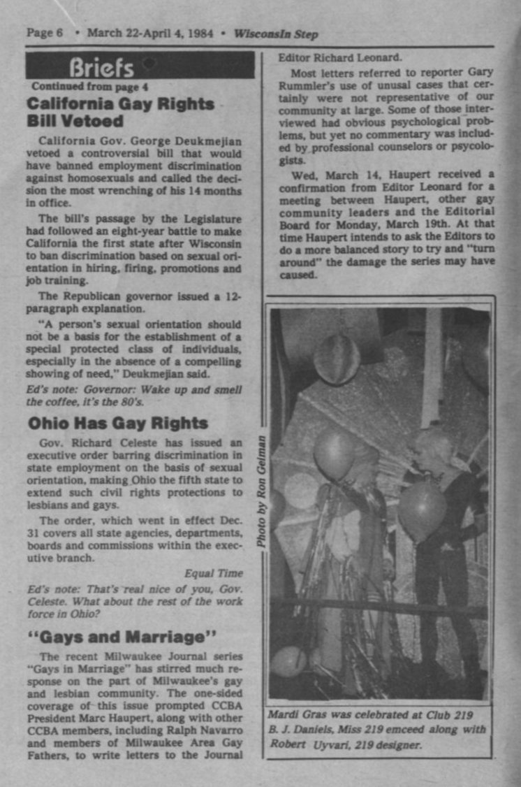 News Brief: "Gays in Marriage" series in Milwaukee Journal;