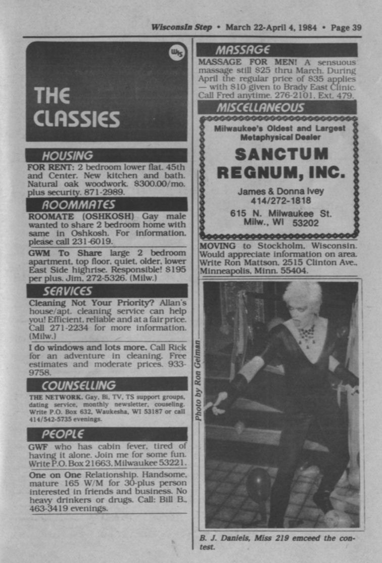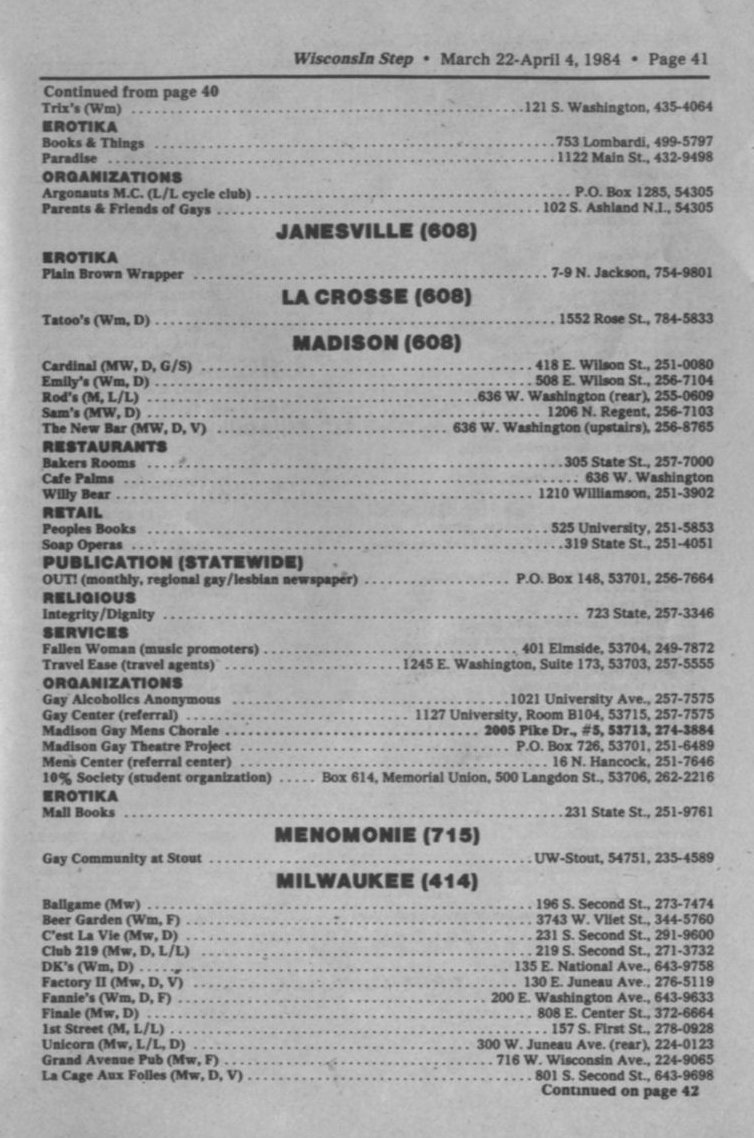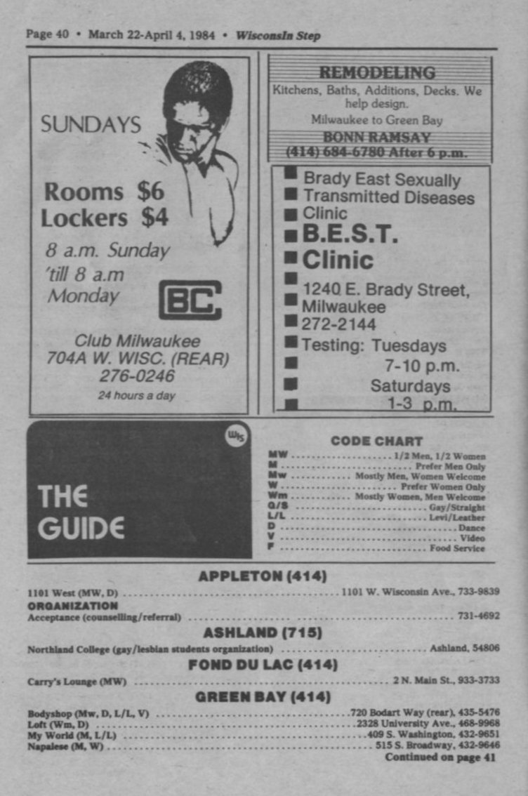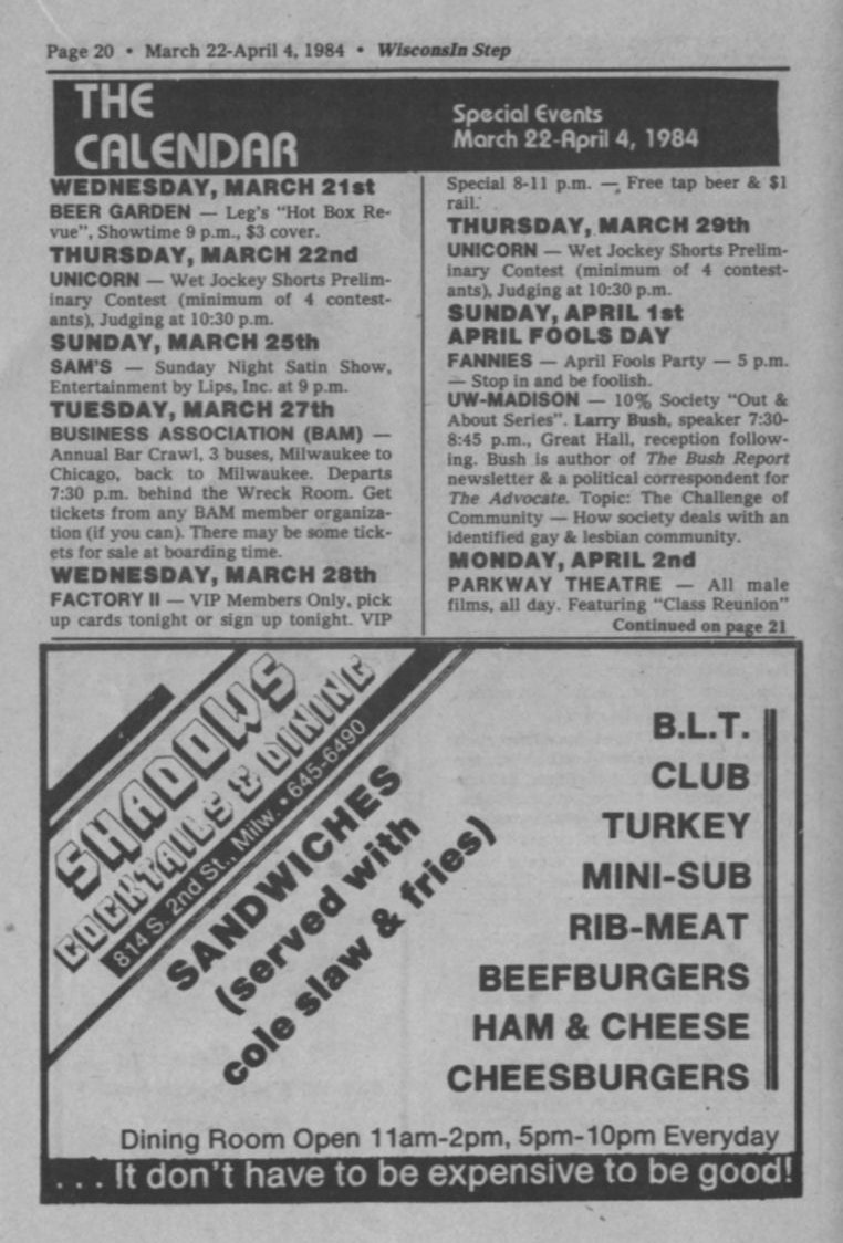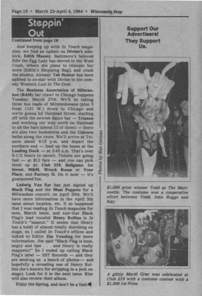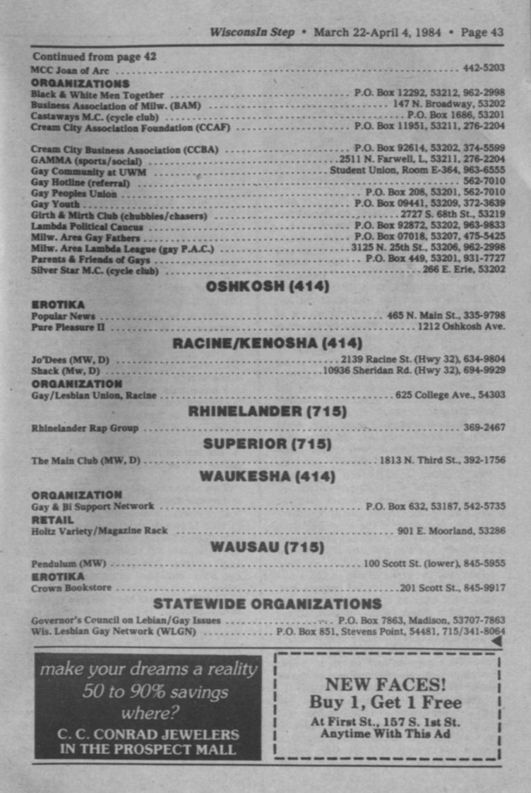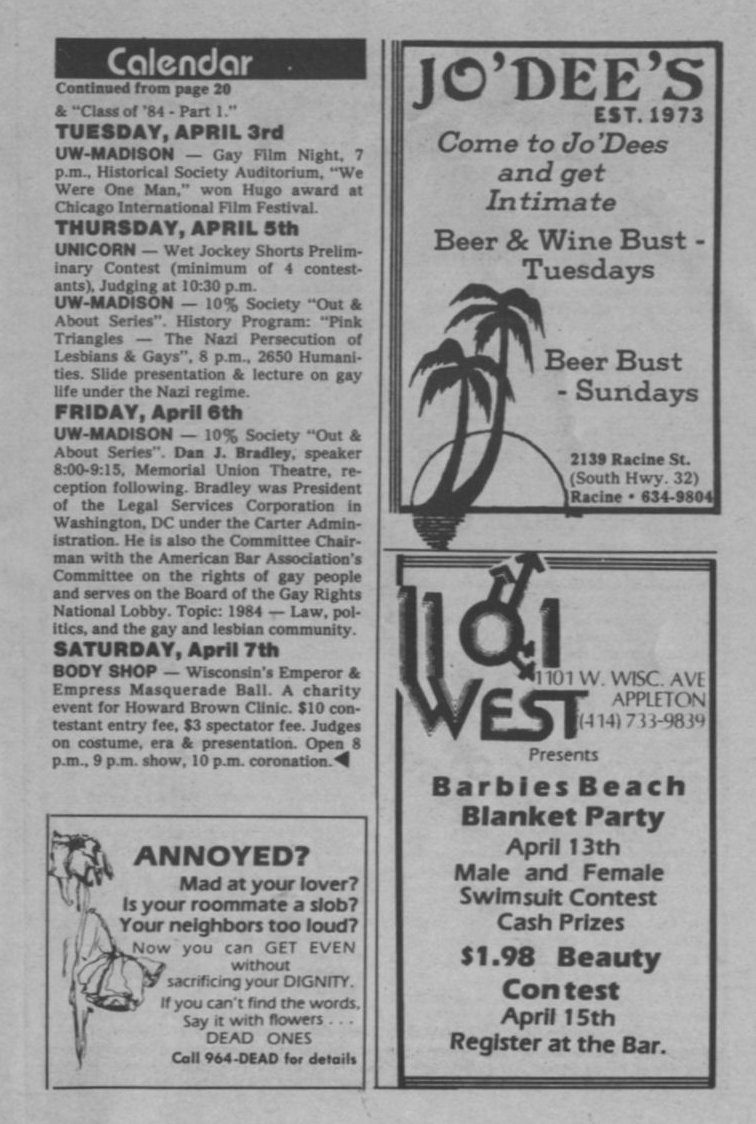 + Ads: Jo'Dee's bar, Racine, and 1101-West, Appleton