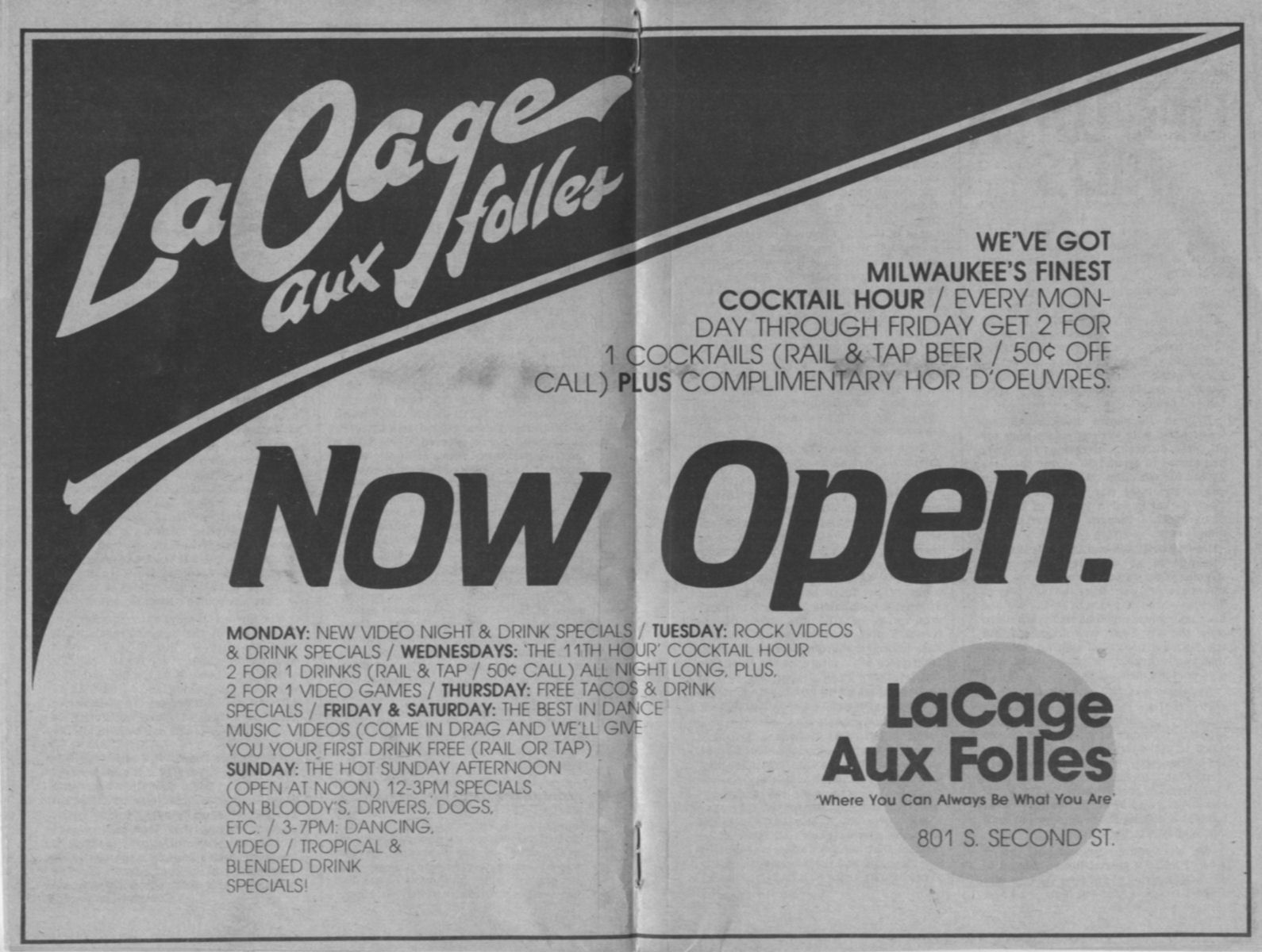 Ad: "La Cage aux folles" Now Open