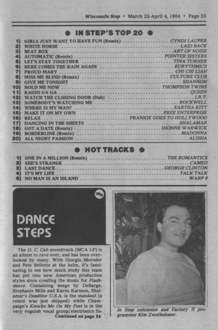 Dance Steps, by Factory II programmer/ DJ Kim Zweibohmer: top songs