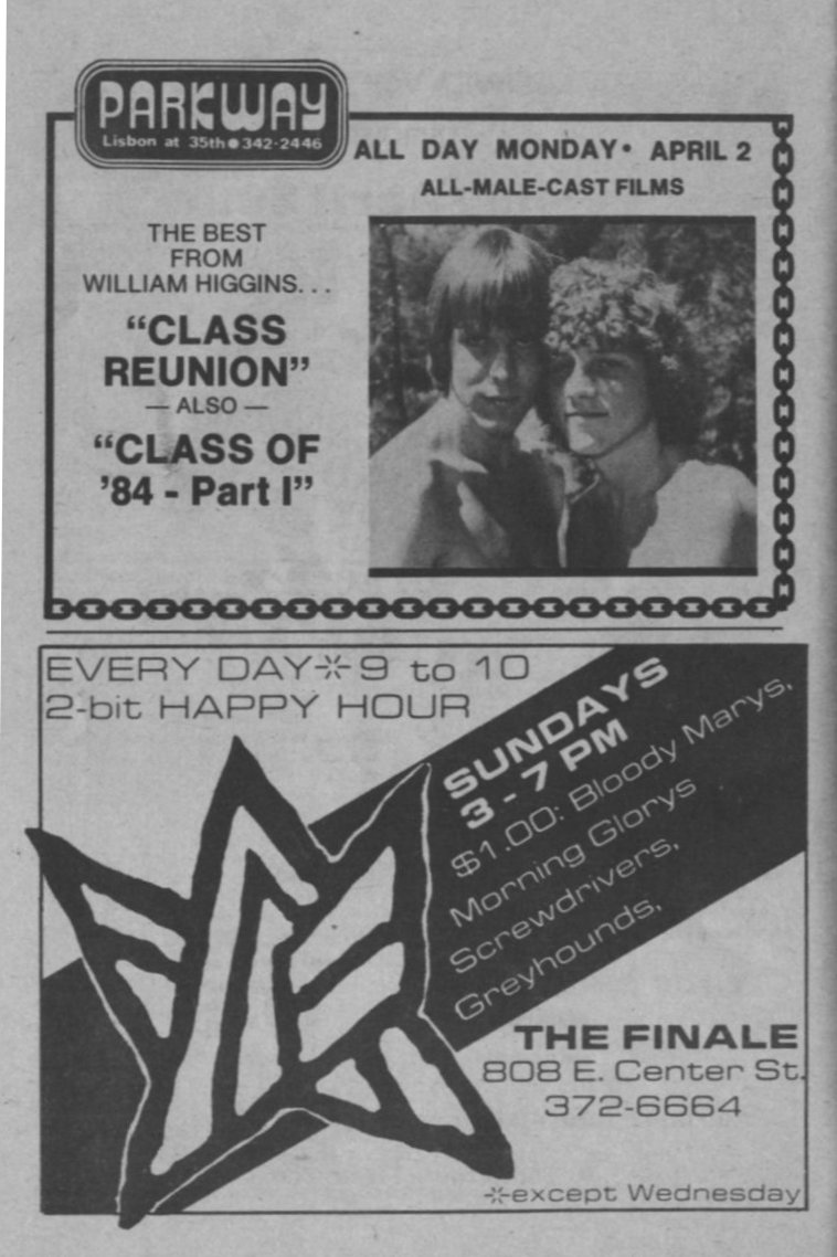 Ads: Parkway Theatre, + Finale bar