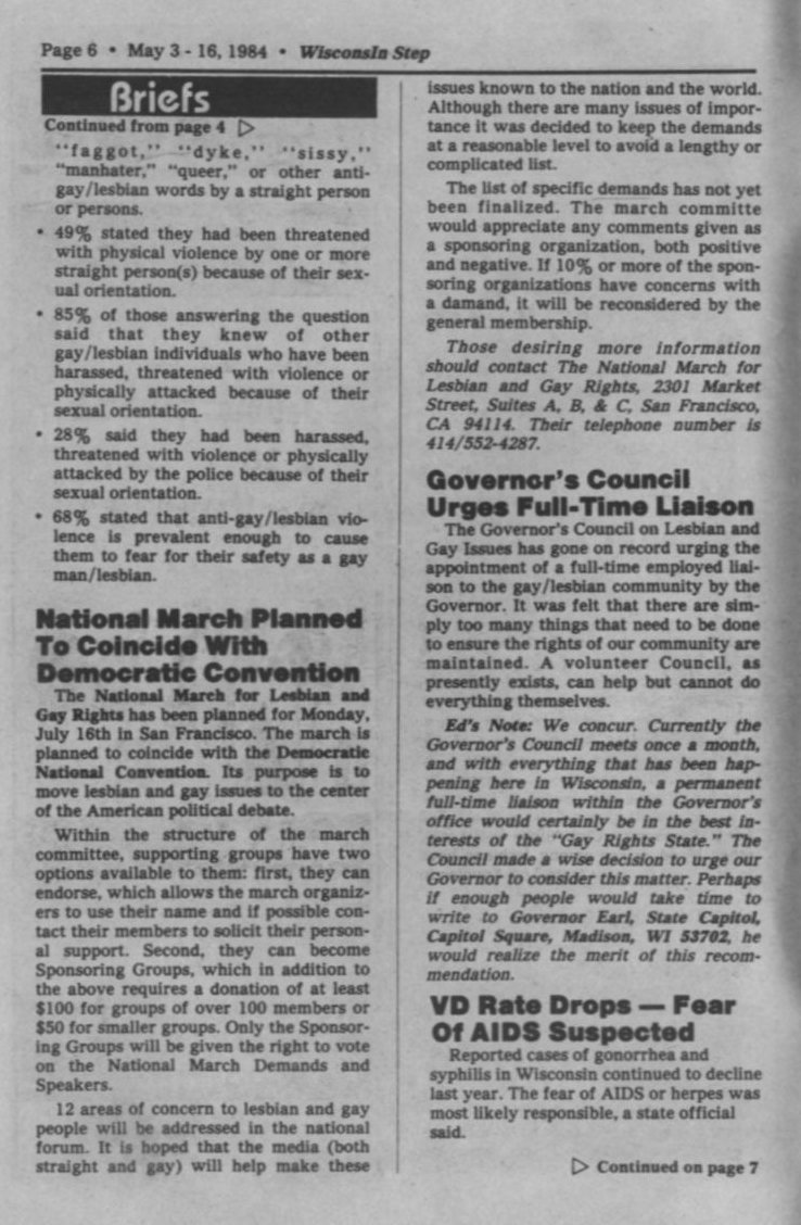 News Briefs, cont.: Governor's Council urges full-time liaison