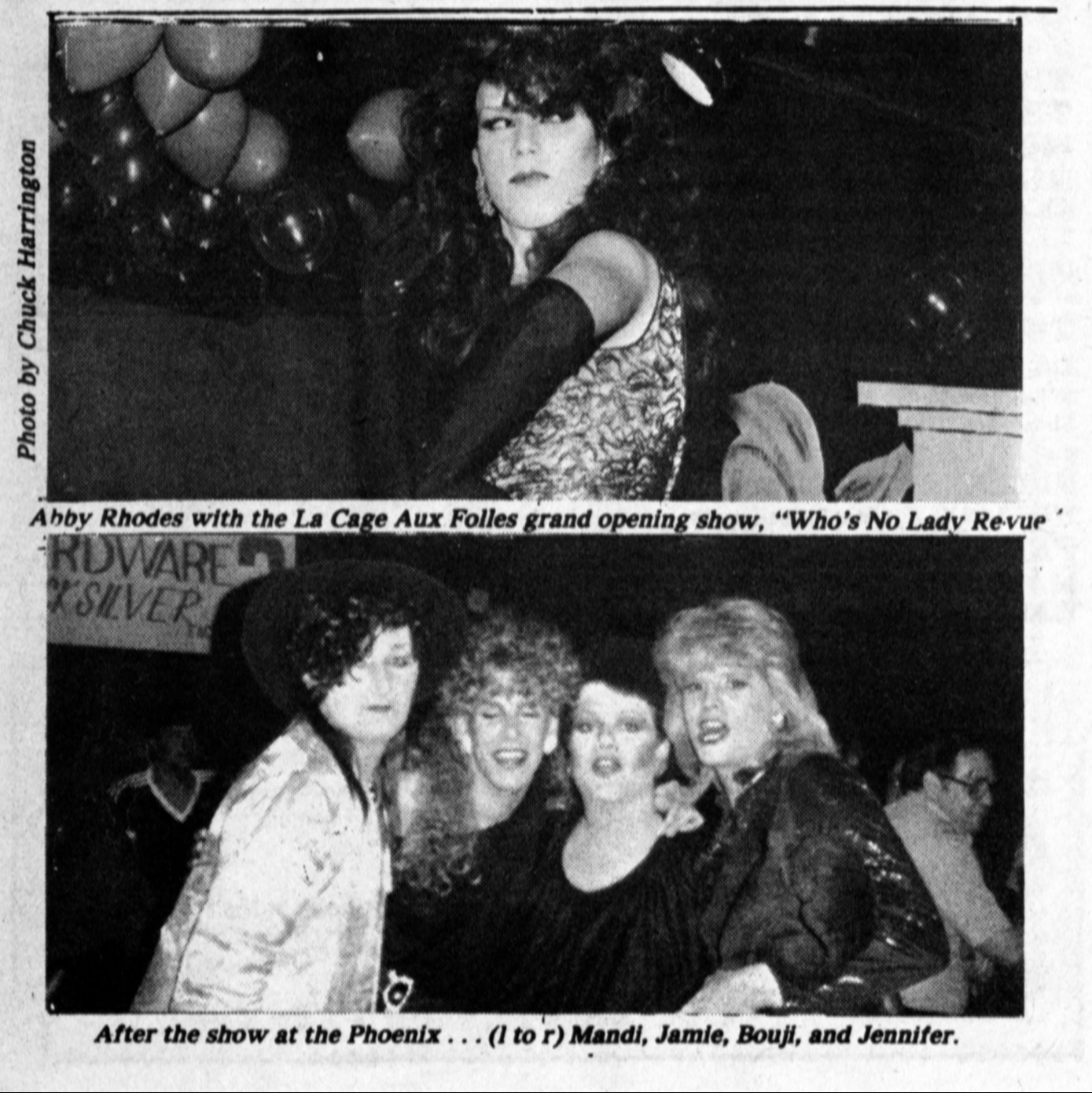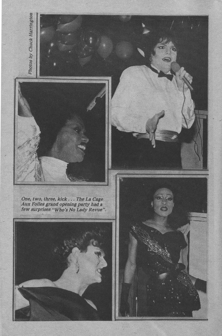 La Cage Aux Folles Grand Opening; B.J.'s anniversary show, Club 219 (incl photo)