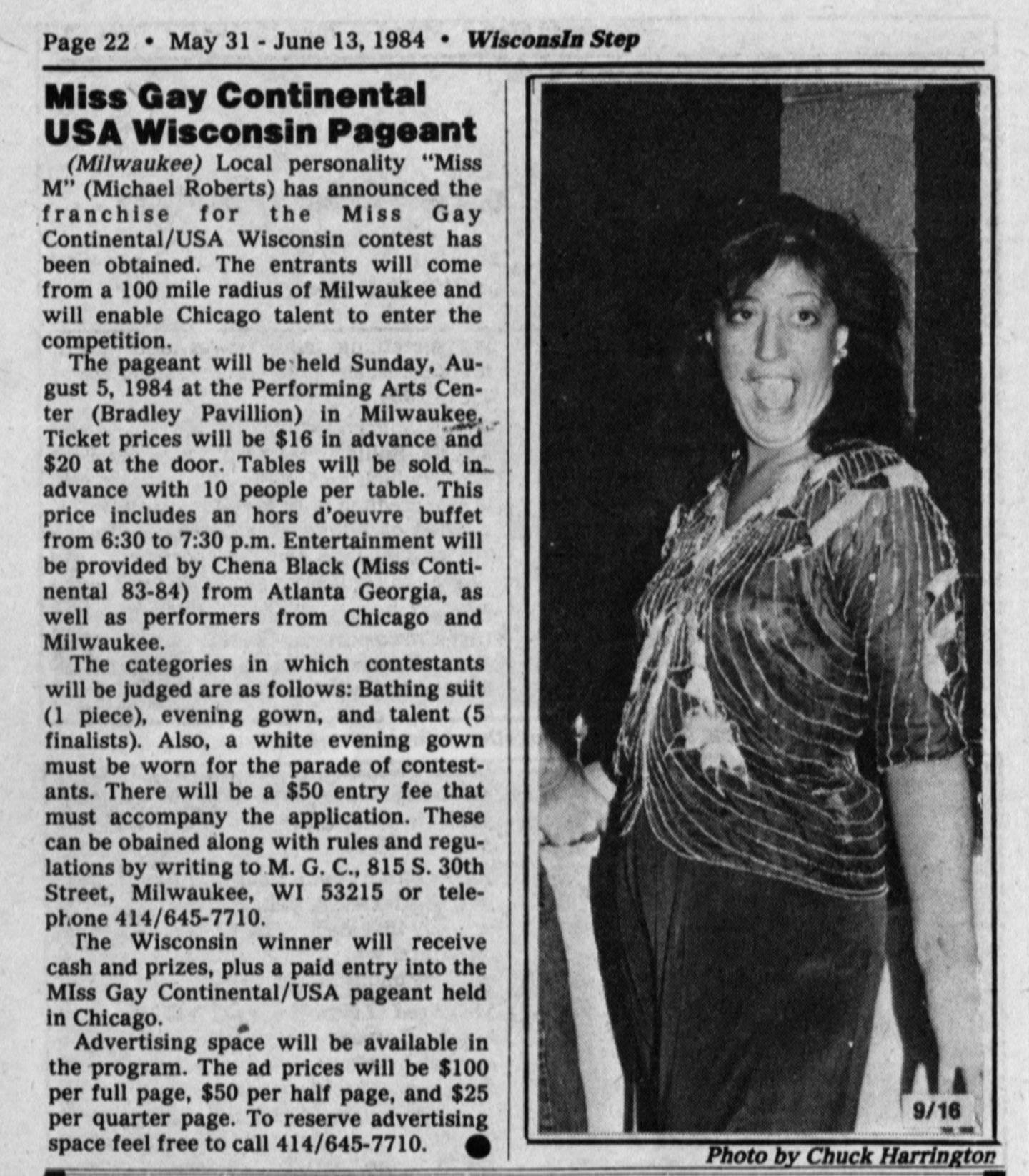 Article & Photo: Miss Gay Continental Wisconsin USA franchise announced by Miss M. (Michael Roberts)