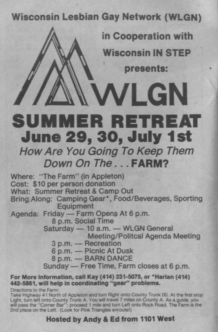 Ad: Wis. Lesbian Gay Network (WLGN) summer retreat