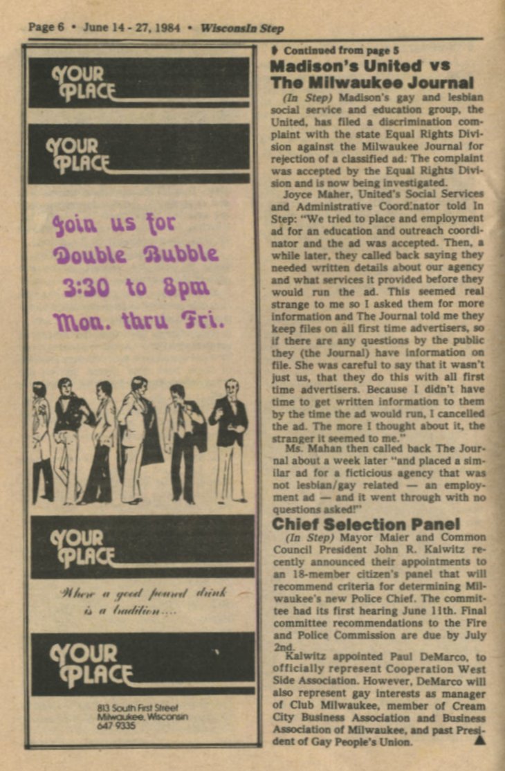 News brief: Madison's The United group files complaint against Milw. Journal; Milwaukee begins process to select new Police Chief; + Ad: Your Place bar