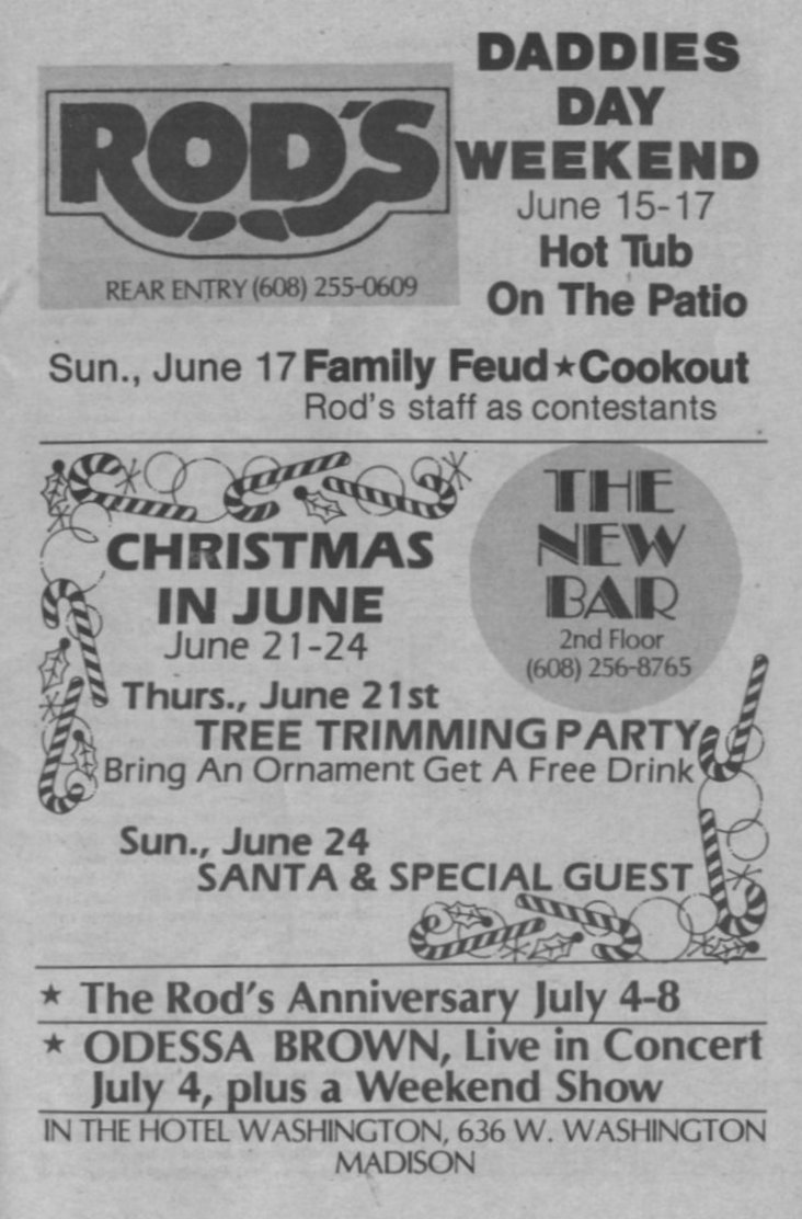 Ad: Rod's and the New Bar, Madison