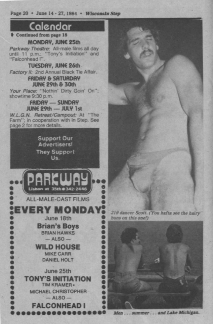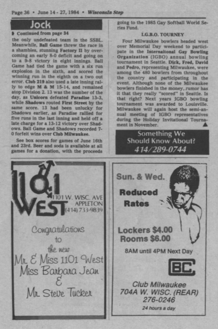 Jock Shorts, cont.; + Ads: 1101 West, Appleton; and Club Baths Milwaukee