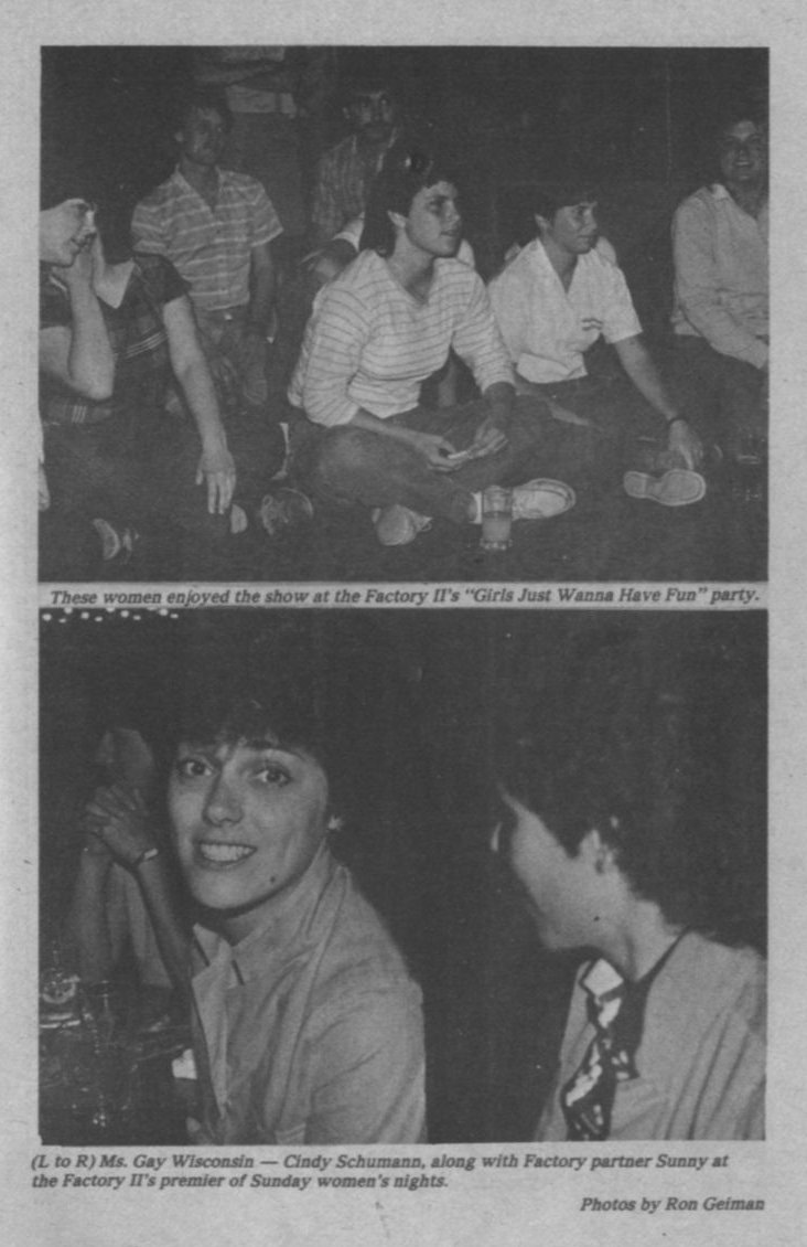 Photo: Factory II's "Girls Just Wanna Have Fun" premier of Sunday women's night; Ms. Gay Wisconsin Cindy Schumann, with Factory partner Sunny