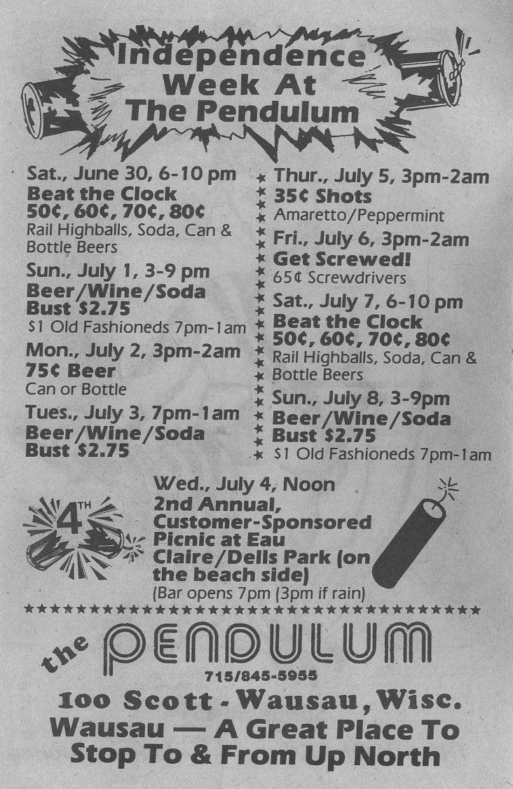 Ad: Independence Week at The Pendulum, Wausau