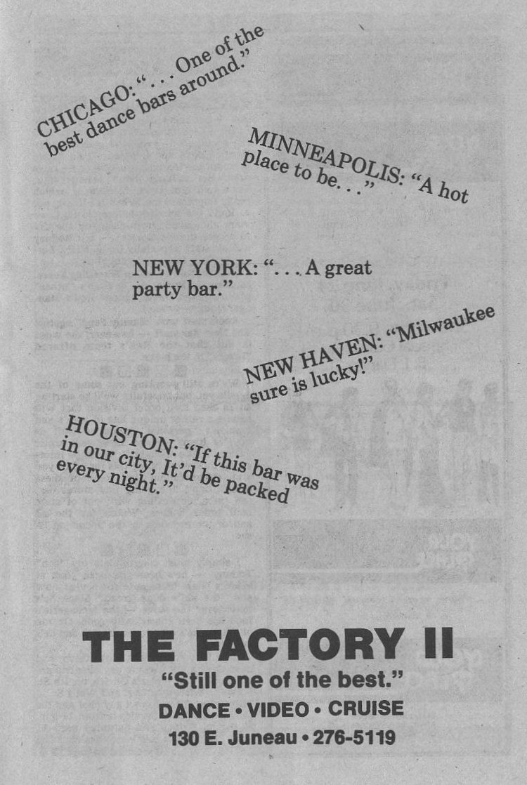 Steppin Out, concl: Club 219 hosts Chili Pepper, Lip Sync contest; Napalese grand reopening party (Green Bay); Your Place's Flamingo Fest 84 rained on + Ad: Fannies 4th, dunk tank, corn roast