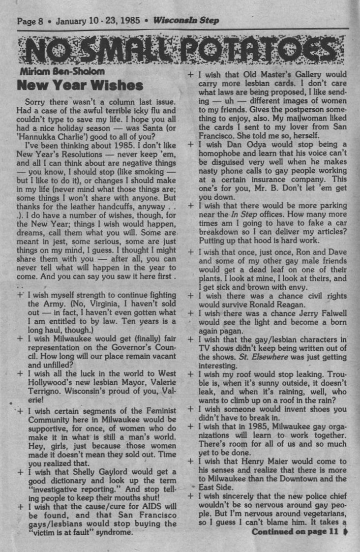 Column "No Small Potatoes", by Miriam Ben-Shalom: New Year Wishes
