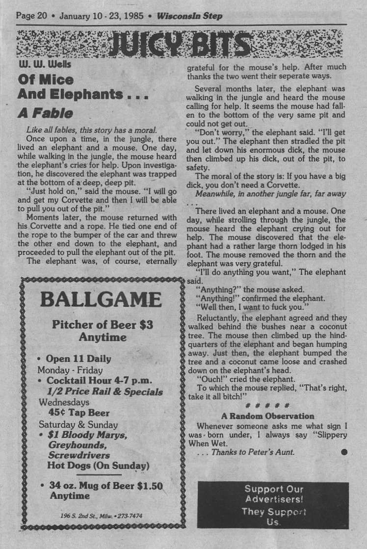 Juicy Bits, by W.W. Wells: a fable, Of Mice and Elephants
