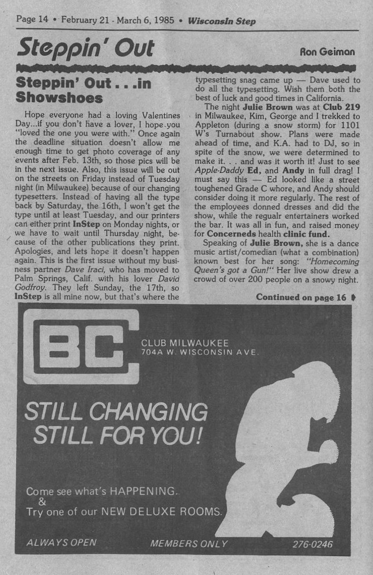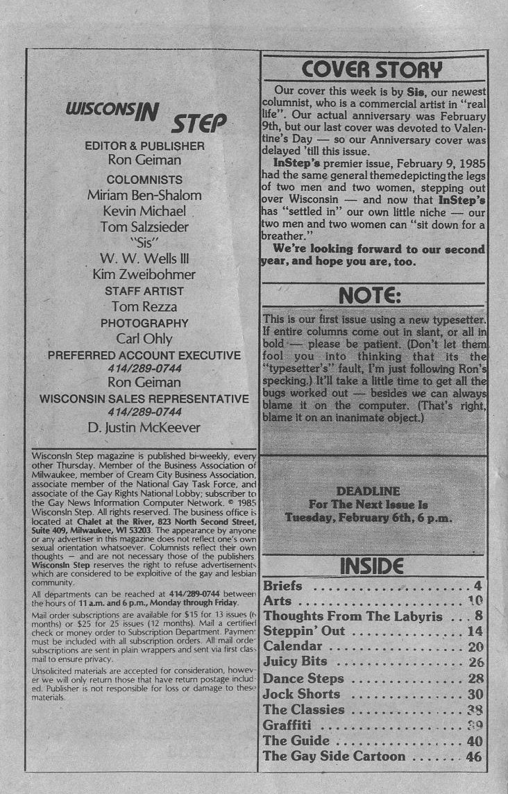 Credits: All cover images and text from In Step copyrighted;