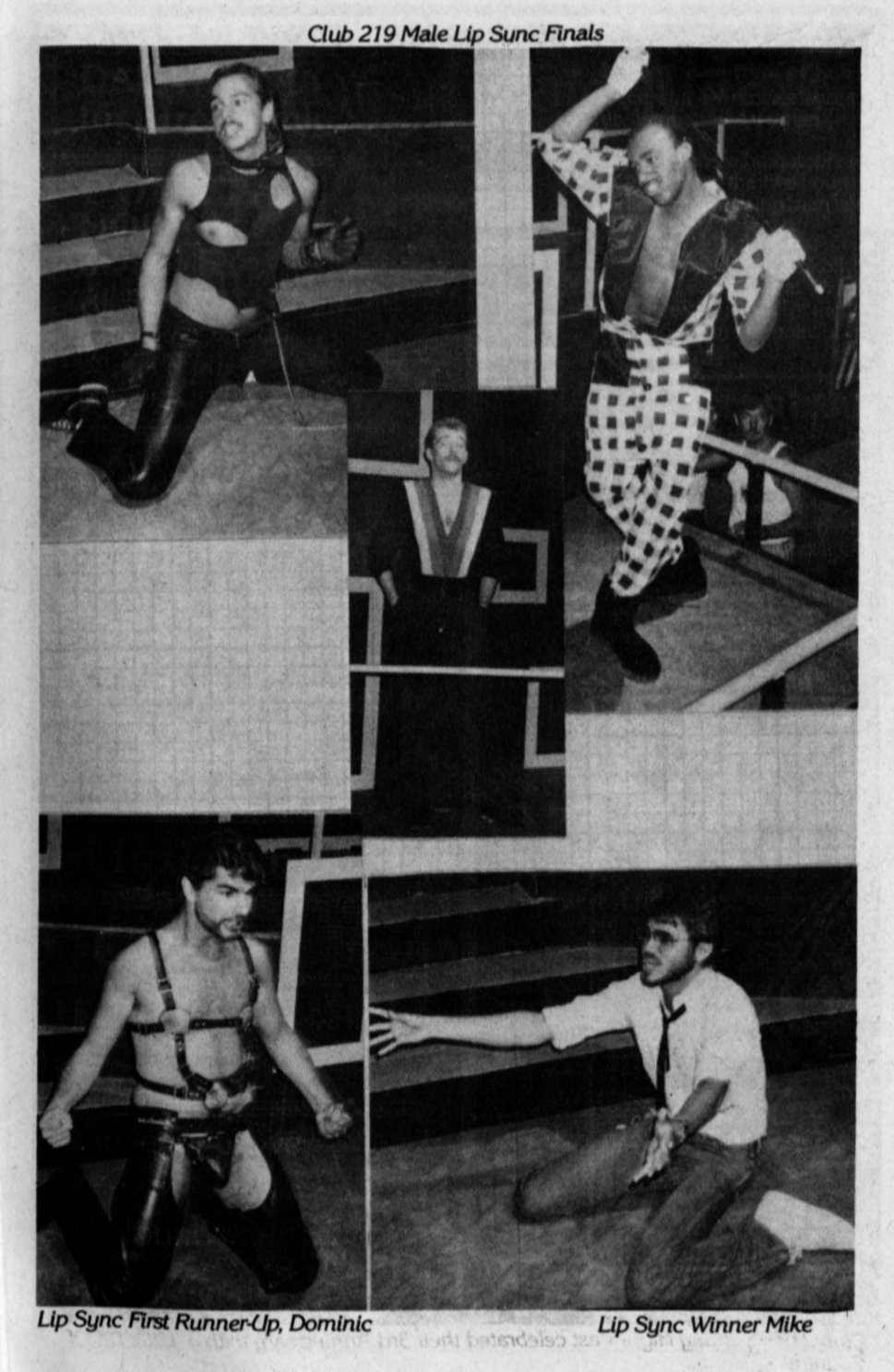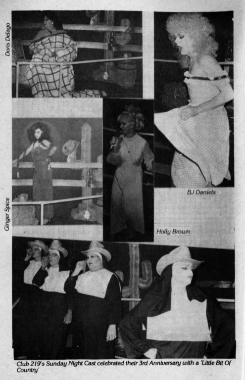 Steppin' Out: Who's Mr. and Miss contest; Club 219's Sunday Night Cast 3rd anniversary performance "Little Bit of Country"; Ball Game bus trip o Arlington Park racetrack; Grand Avenue Pub 3rd anniversary; Rod's Daddies Weekend celebration