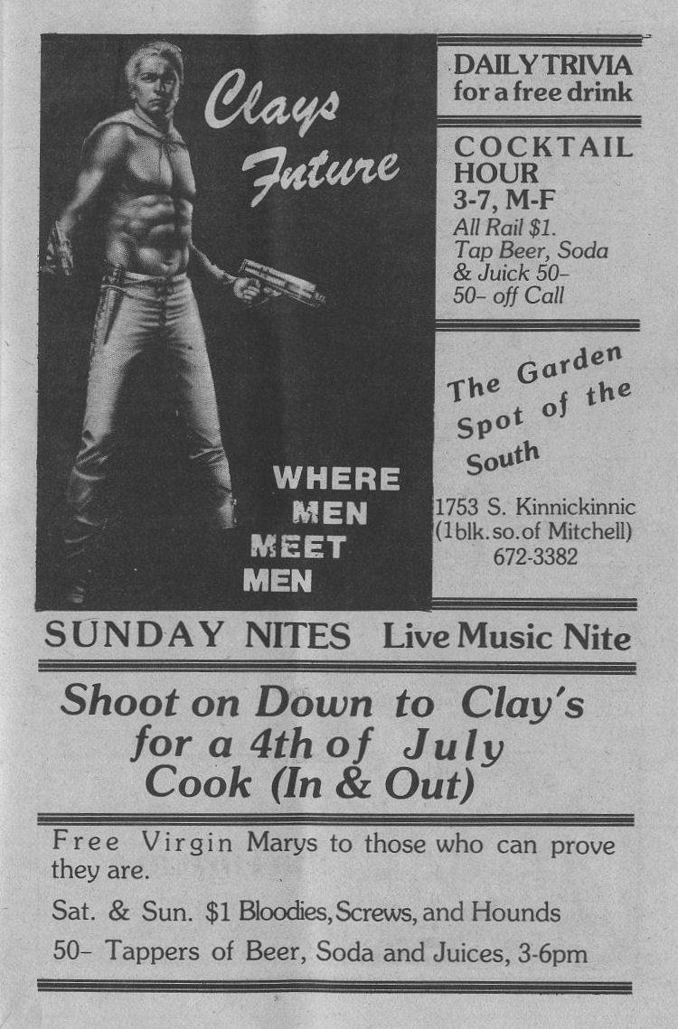 Ad: Clay's Future (bar), "The Garden Spot of the South", 1753 S. K.K.