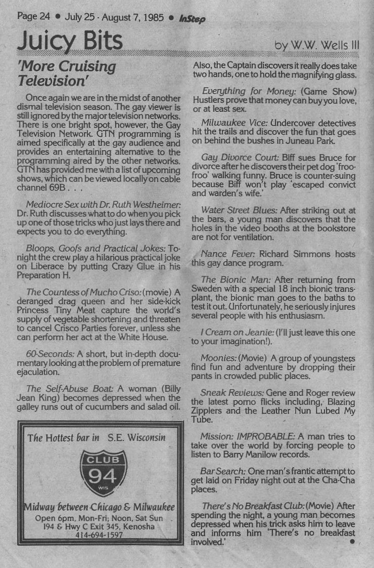 Juicy Bits by W.W. Wells III; dismal television: