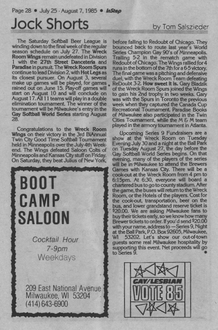 Bar news concl; + Ads: Milwaukee Mixed Gay Chorus performing at Wreck Room; Jo'Dees Racine