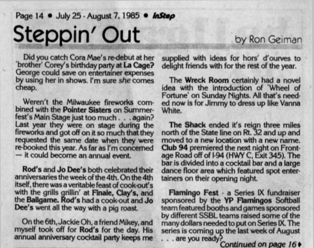 Steppin Out: The Shack, Kenosha, ends its 3 year reign and moves to Club 94;