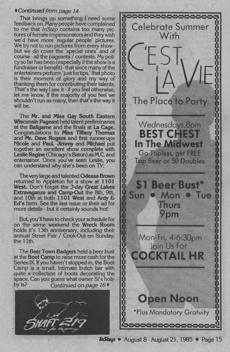Steppin Out cont: Gay SE Wisconsin Prelims;