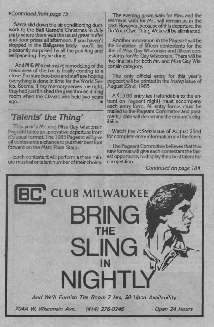 M&M extensive remodeling + Mr. + Miss Gay Wisconsin Pageant plans
